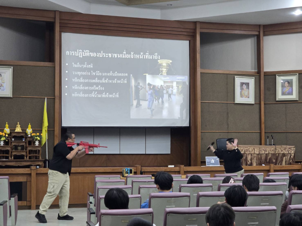 การจัดกิจกรรมในครั้งนี้ ผู้ช่วยศาสตราจารย์ ดร.อรรณพ ทัศนอุดม รักษาราชการแทนอธิการบดี มทร.ล้านนา มอบหมายให้ ผู้ช่วยศาสตราจารย์ศุภชัย อัครนรากุล ผู้ช่วยอธิการบดี เป็นผู้กล่าวต้อนรับคณะวิทยากรและกล่าวเปิดกิจกรรม โดยกองพัฒนานักศึกษา มทร.ล้านนา เป็นหน่วยงานหลักในการดำเนินการจัดอบรม ภายในกิจกรรมได้รับความร่วมมือและการสนับสนุนองค์ความรู้จากทีมวิทยากรผู้เชี่ยวชาญจากคณะนิติวิทยาศาสตร์ โรงเรียนนายร้อยตำรวจ จังหวัดนครปฐม นำโดย พลตำรวจโท ดร.เสนิต สำราญสำรวมกิจ พร้อมทีมครูฝึกนายร้อยตำรวจ ถ่ายทอดความรู้ด้านการป้องกันและรับมืออาชญากรรมรูปแบบใหม่ อาทิ อาชญากรรมไซเบอร์ แก๊งคอลเซนเตอร์ ความรุนแรงจากอาวุธปืน และสถานการณ์การกราดยิง ภายใต้แนวคิด “วัคซีนไซเบอร์ การป้องกันอาชญากรรมรูปแบบใหม่” นอกจากนี้ ผู้เข้าร่วมยังได้ฝึกทักษะเชิงปฏิบัติการผ่านการจำลองสถานการณ์เสมือนจริง การหลบภัย การเคลื่อนตัว และการเอาตัวรอดจากเหตุการณ์ฉุกเฉิน เพื่อเสริมสร้างความพร้อมและความปลอดภัยให้กับตนเองและสังคม